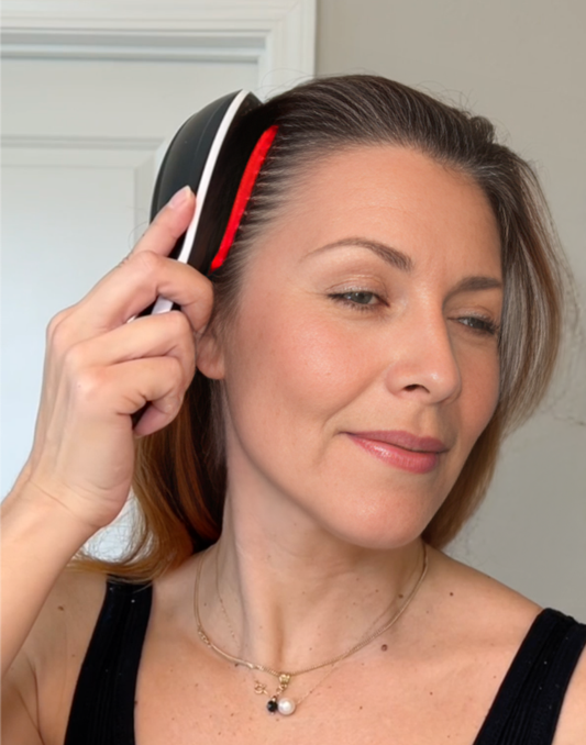 Massage the brush across your scalp for 10 minutes, ensuring even serum distribution for maximum absorption.